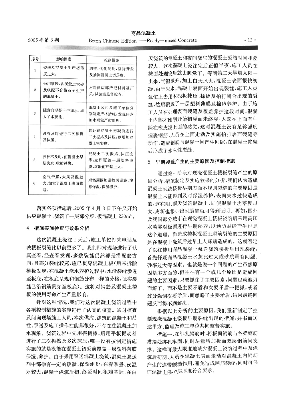 干燥、高温季节现浇混凝土楼板早期裂缝成因分析及预防措施《商品砼》