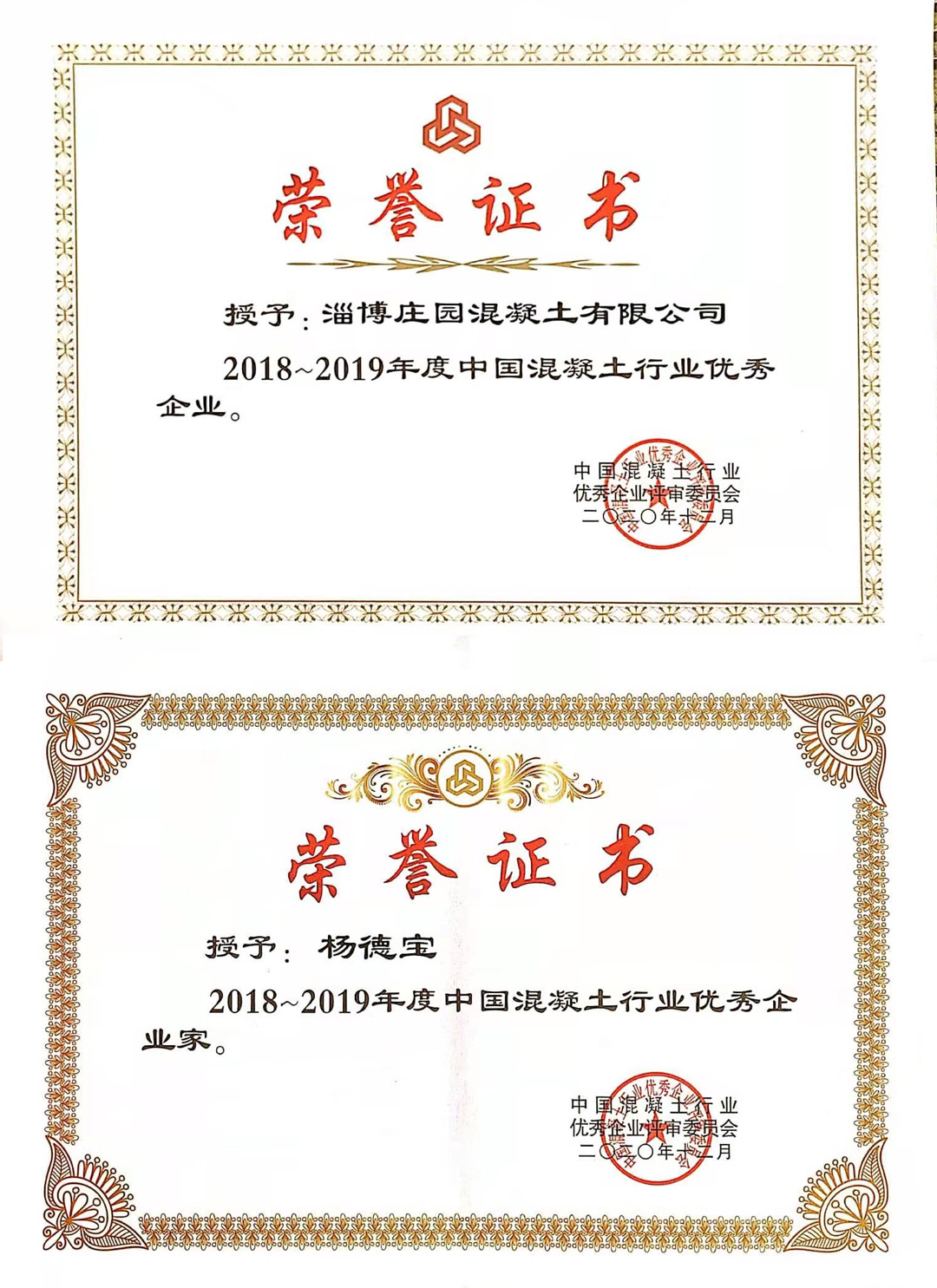 在此次大会上,经“中国混凝土行业优秀企业评审委员会”评审,淄博庄园混凝土有限公司荣获“2018~2019年度中国混凝土行业优秀企业”、淄博庄园混凝土有限公司董事长兼总经理杨德宝荣获“2018~2019年度中国混凝土行业优秀企业家”。