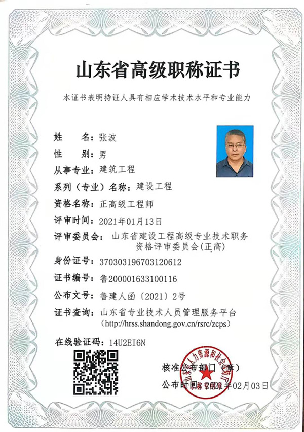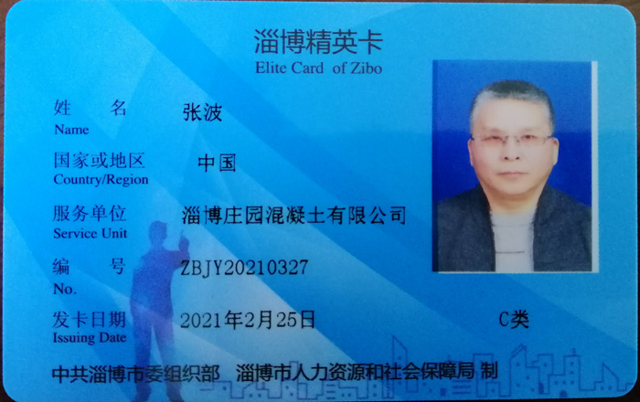 淄博庄园混凝土有限公司注重人才培养与使用,公司总工程师张波2021年2月3日取得山东省人力资源和社会保障厅核准颁发的“山东省建设工程正高级工程师职称证书”。同时获得中共淄博市委组织部、淄博市人力资源和社会保障局颁发的“淄博市高层次人才精英卡”,及依据淄博市人民政府“淄博人才金政37条”获得政府补贴奖励10万元。