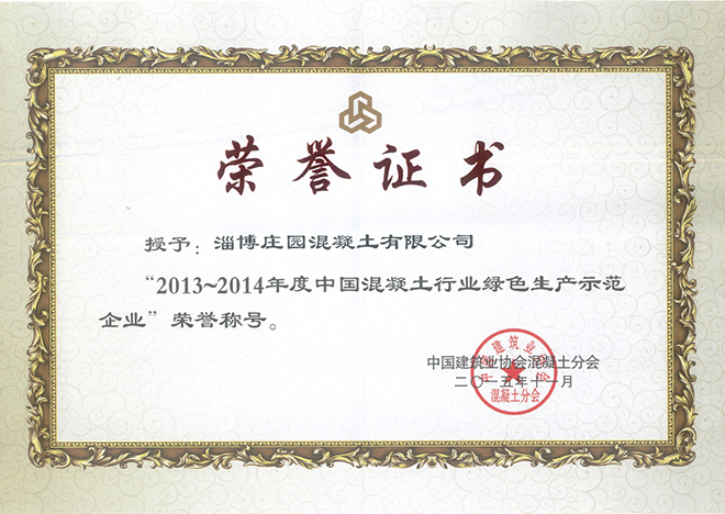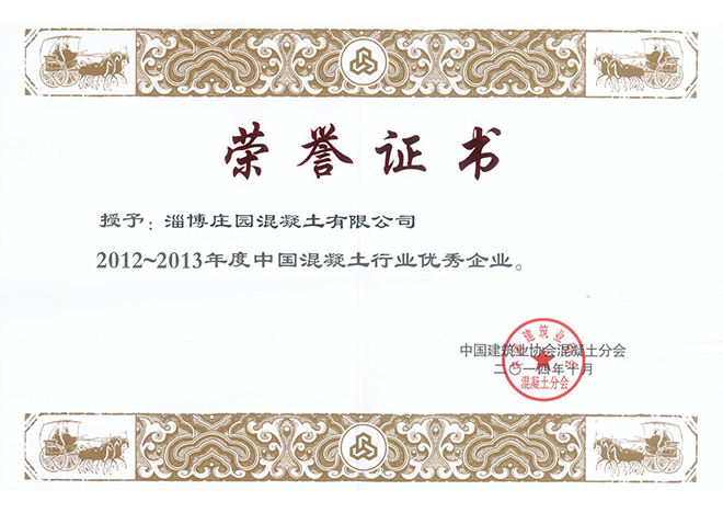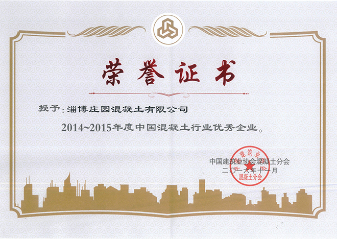 淄博庄园混凝土有限公司中国混凝土行业优秀企业