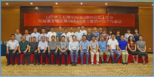 公司总工程师张波与山东省建筑业协会混凝土分会会长王守宪、山东省住房和城乡建设厅标准定额站张波主任等有关领导、专家及参编人员合影。
